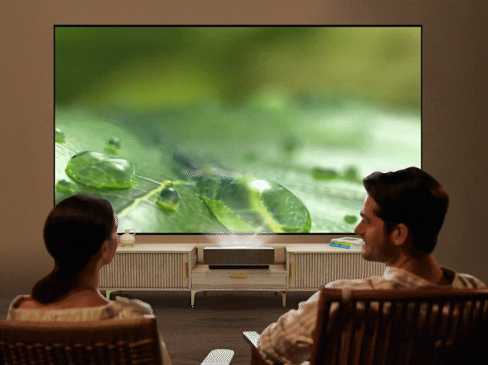 Think of a Liquid Crystal Display (LCD) TV. The Liquid Crystal Screen works as a display & the light source from a projector works as the backlight in LCD TV to produce UHD images.