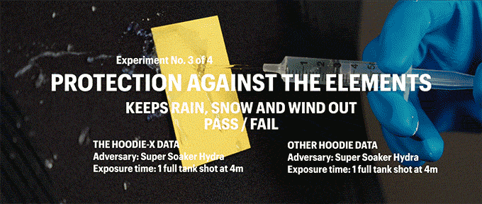 Durability and versatility are our main drivers when reinventing clothing. When we embarked on the task of engineering the Hoodie-X these drivers were fundamental. Materials science played a big role here. We needed to achieve four key points: