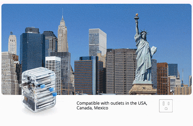 Unlike other chargers on the market, Passport III has a built-in intelligent auto-resetting 10A fuse to protect you from any potential hazards. It immediately cuts off the flow of power when the temperature is too high (120°C) and recovers when the temperature returns to normal. Other travel adapters have a single-use fuse that would need to be replaced to get it working again.