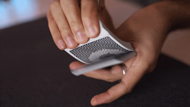 The Waves design features a subtle one-way design. This creates a low-key flipbook animation effect when the cards are shuffled in reverse directions and riffled. Magicians can also take advantage of the one-way design to secretly locate and track cards of interest.