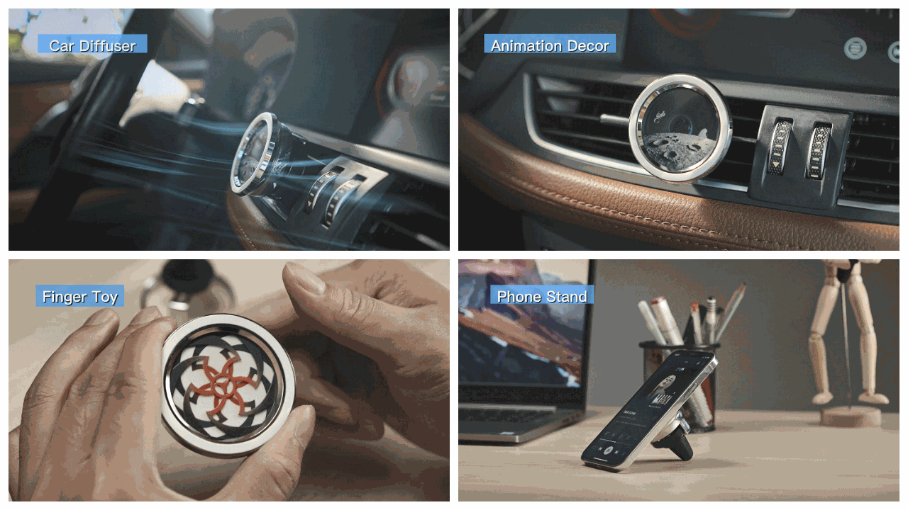 NUMBER ZERO is the world’s very first 5-in-1 magnetic car vent cellphone mount with dynamic animation! Whether you’re talking, navigating, or listening to your favorite music, it holds your device in place securely so that you get a safer, distraction-free driving experience. As a bonus, you can use the NUMBER ZERO as an aromatherapy diffuser to fill your car with the smell of your favorite essential oils or perfume. When not in use, the NUMBER ZERO displays an eye-catching dynamic animation that’s sure to add an element of fun to your car interior. It also can be your phone stand when watch movie at table. Last but not least, you can use the device as a hand-held stress reliever to relax at the end of a hard day’s work.